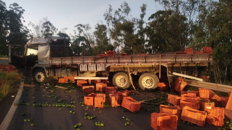 Caminhão carregado de abacates capota no acesso à Rondon