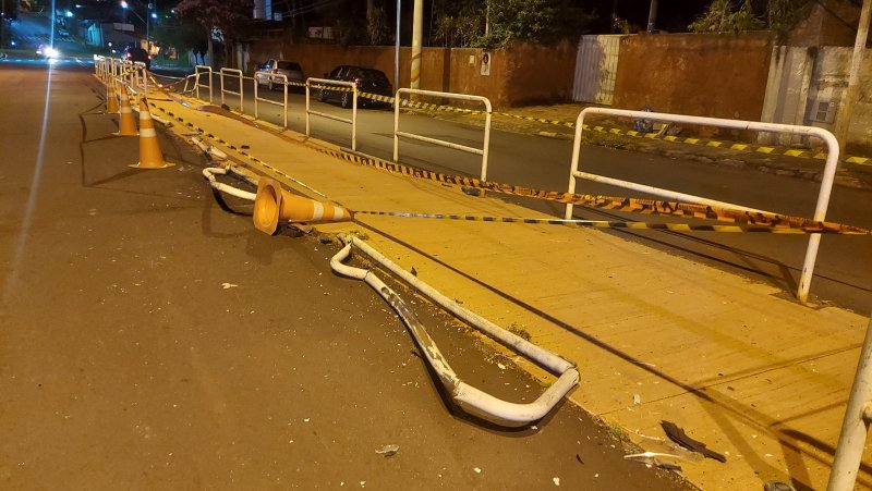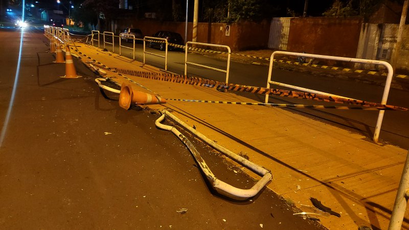 Acidente registrado na noite de terça-feira, 25 de fevereiro, provocou danos a ciclovia instalada no Jardim Paraíso, em Botucatu.