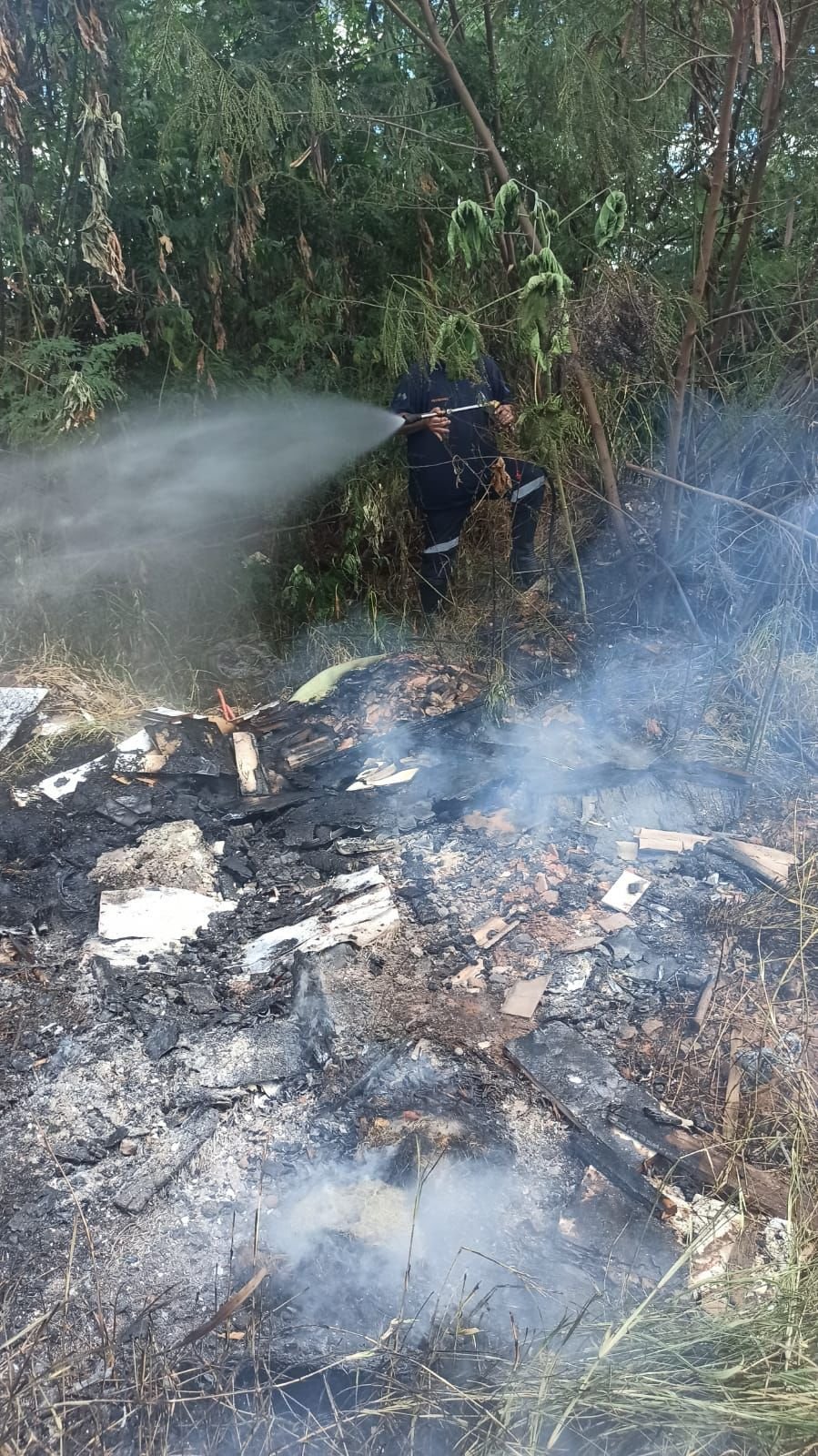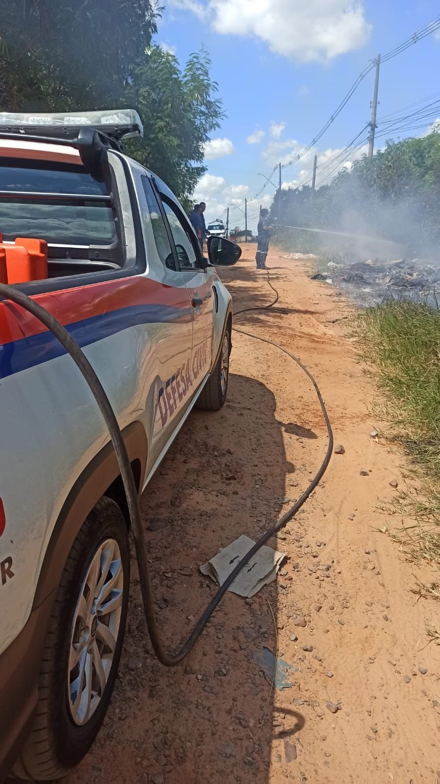 Defesa Civil foi acionada para controlar as chamas que atingiram parte da mata seca e alguns materiais como madeira e plástico. Há a possibilidade de que o incêndio tenha sido criminoso.