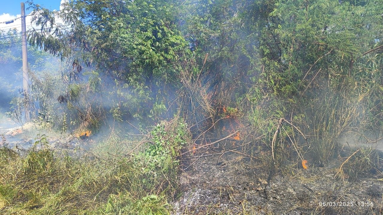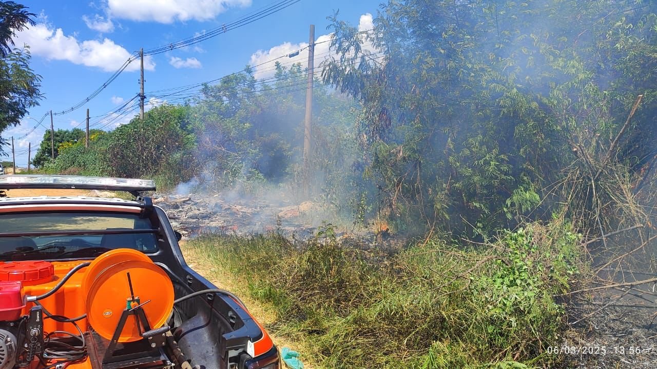 Incêndio atingiu área de vegetação na tarde desta quinta-feira, 6 de março, na Rua Nicola Zaponi, Vila Real. Incidente ocorreu em um terreno nas proximidades do shopping center.