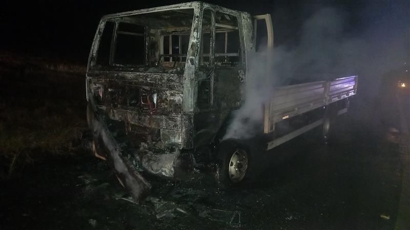 O veículo trafegava pela pista quando o condutor percebeu as chamas se iniciando pelo motor. Houve tempo de sair da cabine, que acabou consumida pelas chamas.