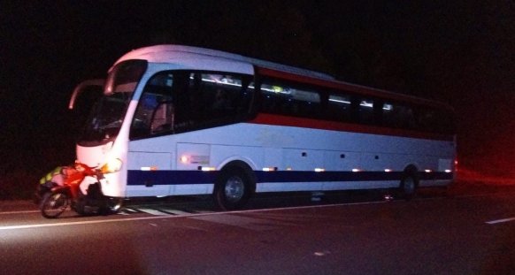 Colisão na madrugada deste sábado, 19 de abril, envolveu um ônibus de passageiros e uma motocicleta na Rodovia Marechal Rondon (SP 300), no trecho de Agudos.