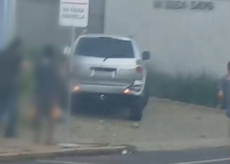 O Mitsubishi, sem controle, invadiu o estacionamento de um escritório. A vítima foi atropelada. Equipe da Guarda Municipal foi deslocada até o local e deteve o motorista, que apresentava sinais de embriaguez.