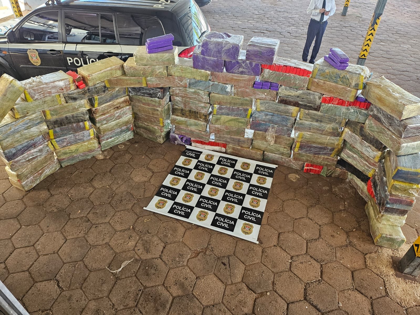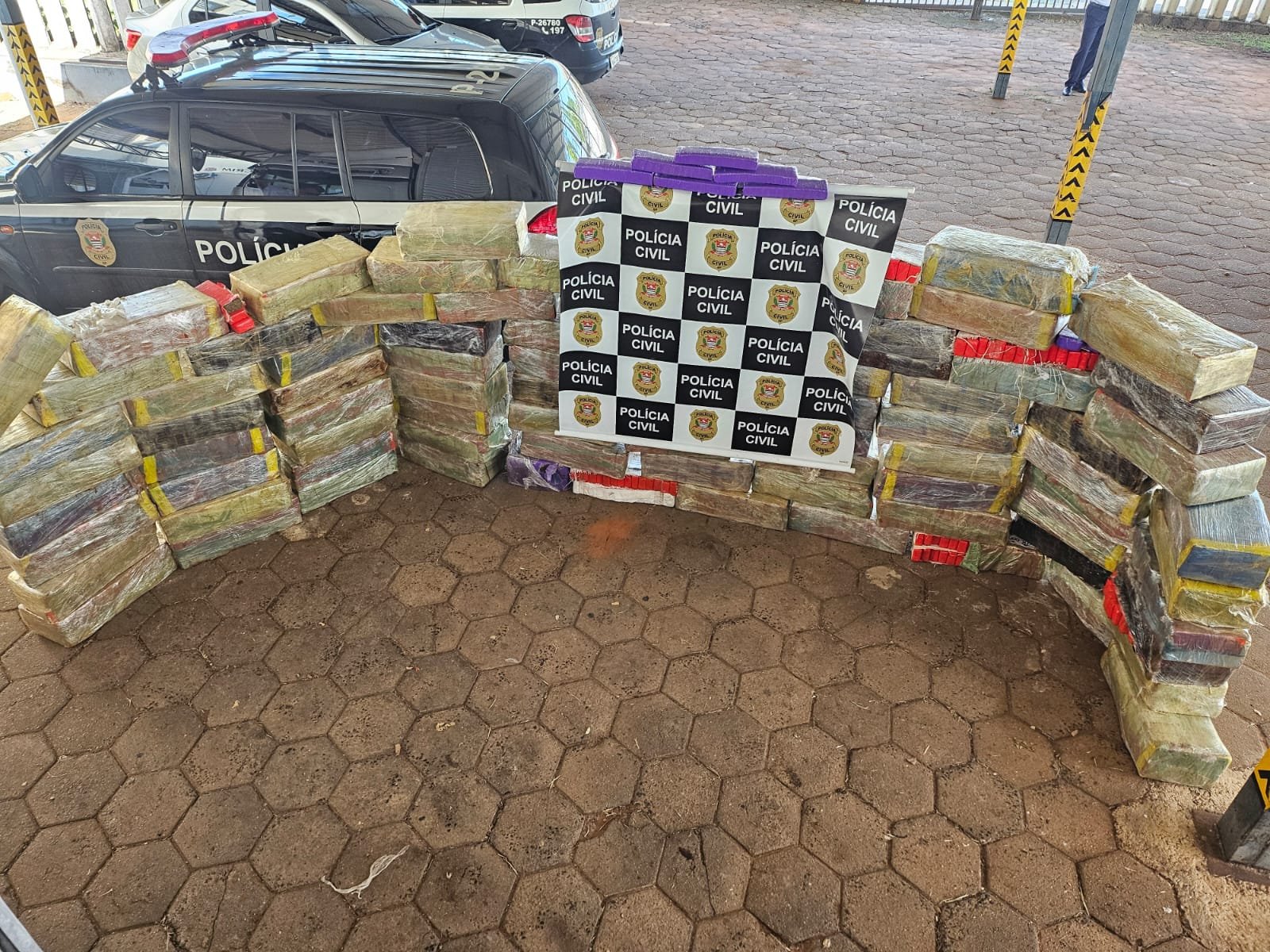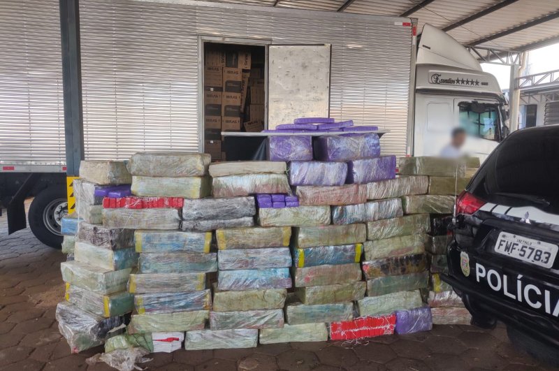 Um caminhão-baú era monitorado pela Polícia Civil quanto a ações suspeitas. Ocorreu abordagem, com a carga de maconha sendo encontrada na parte interna.