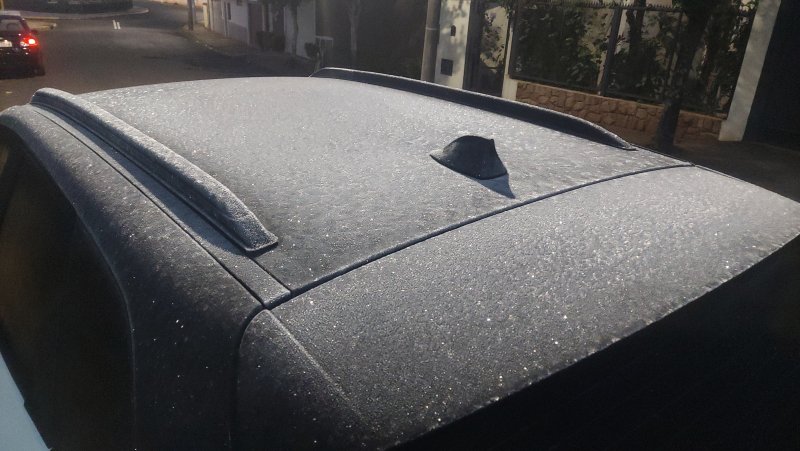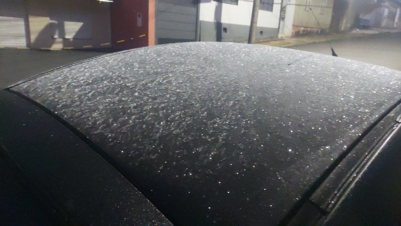 Em diversos bairros houve incidência de geada. Moradores encontraram carros cobertos com camada de gelo. A relva apareceu branca em muitos terrenos.