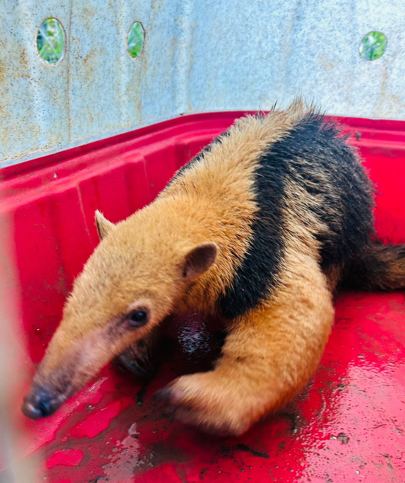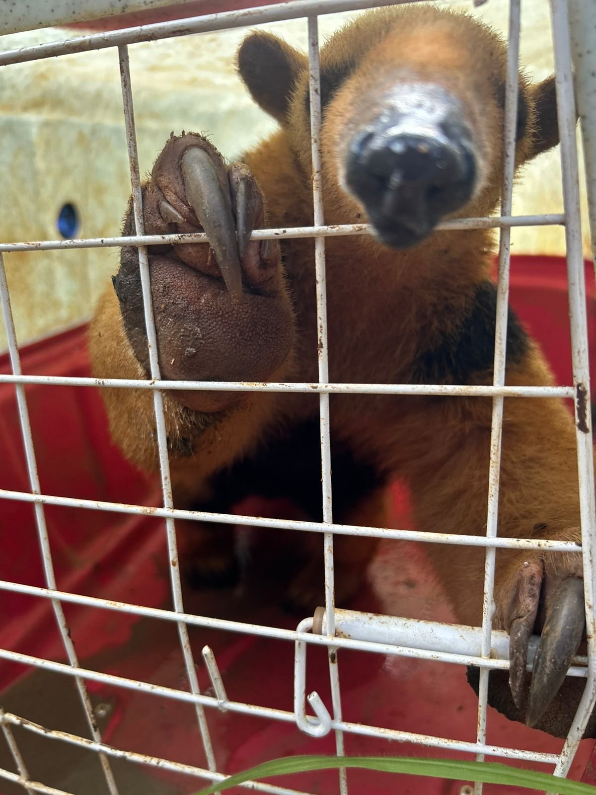 Colaboradores da empresa avistaram o tamandua e acionaram auxílio da GCM. O animal foi resgatado e passou por exames veterinários não tendo nenhum ferimento e apresentando boas condições de saúde.
