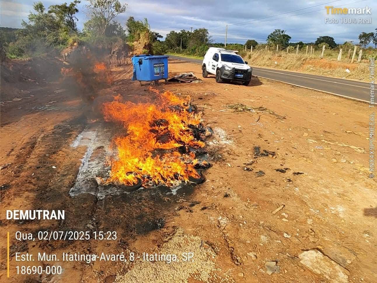 Caso de dano ao patrimônio público e crime ambiental ocorreu nesta quarta-feira, 2 de julho, na rodovia vicinal Cel. Eduardo Lopes de Oliveira, que conecta Itatinga a Avaré.