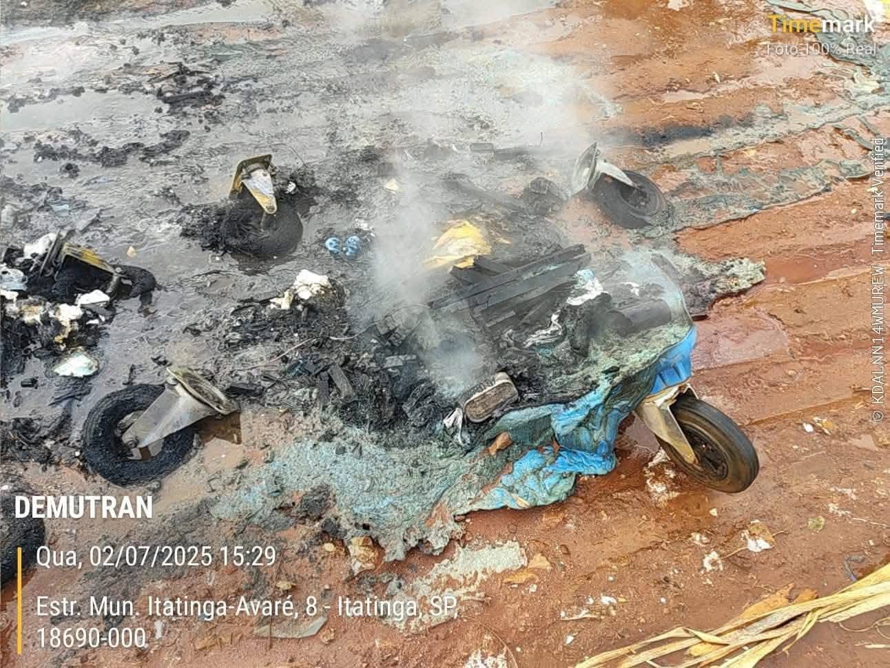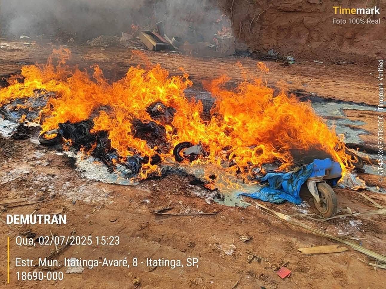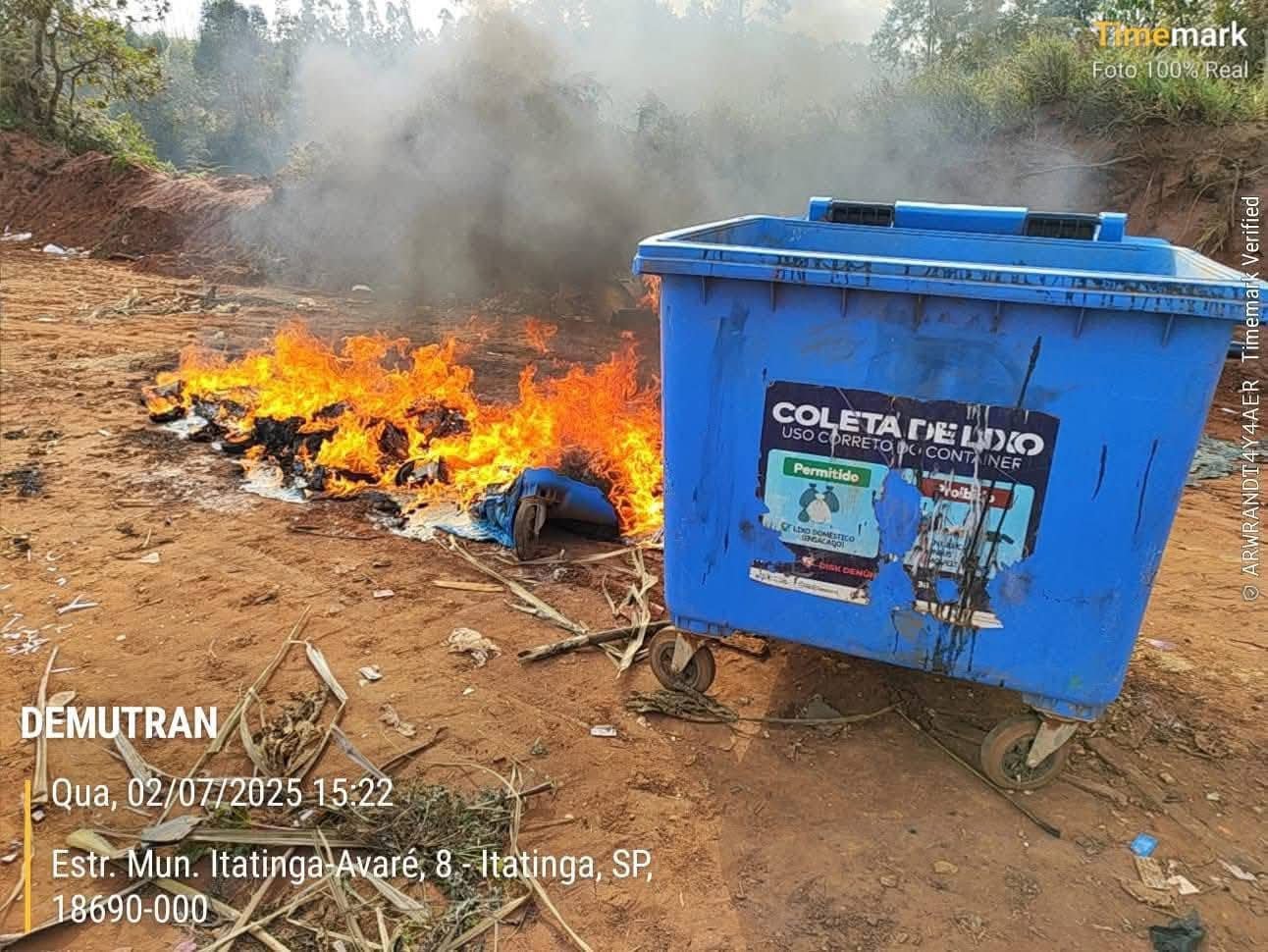 Equipes da Prefeitura de Itatinga foram acionadas para combater as chamas, mas devido ao material plástico, os recipientes acabaram derretidos.