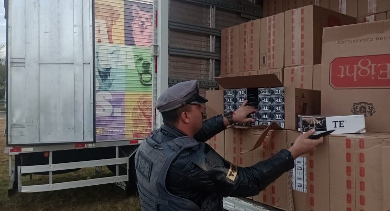 Mais de 470 mil maços de cigarros contrabandeados foram apreendidos na região pela Polícia Militar Rodoviária (PMR). Ocorrência foi registrada dia 10 de julho na Rodovia Aristides da Costa Barros (SP 157), em Porangaba.