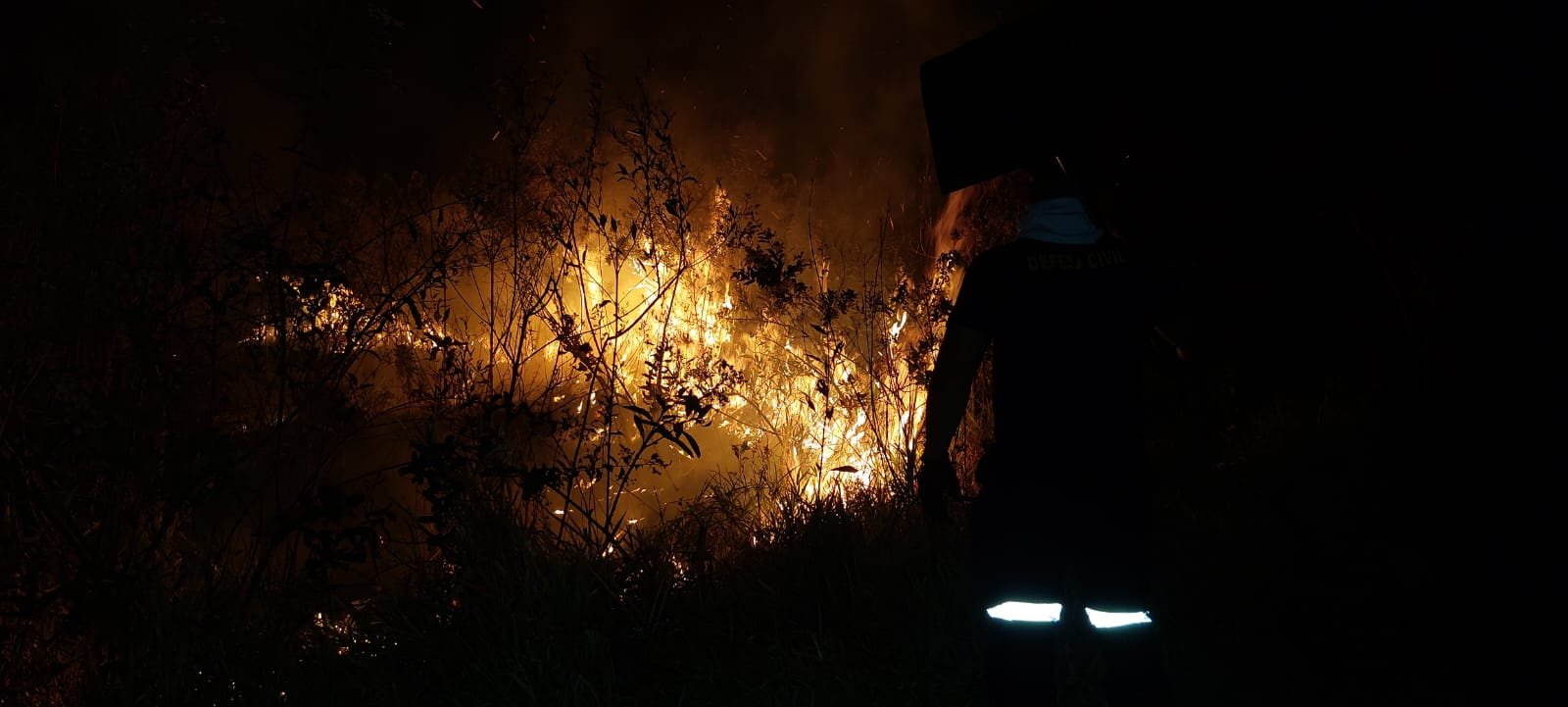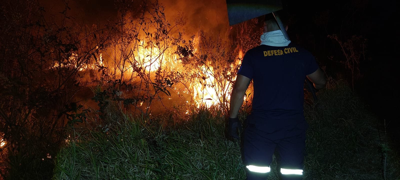 Populares acionaram a Defesa Civil para atendimento de ocorrência em área de mata na Rua Miguel Soler Caparros. Na denúncia, um homem foi visto ateando fogo na vegetação.