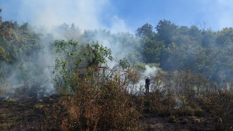 Ainda de causa desconhecida, o incêndio consumiu quase dois hectares de área, atingindo mato seco e outros materiais no local.