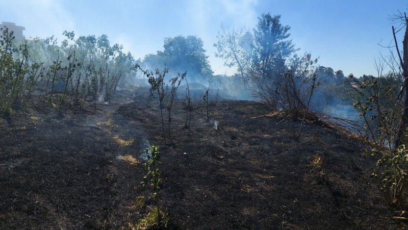 Incêndio na manhã desta sexta-feira, 15 de agosto, destruiu vasta área de vegetação na linha férrea de Botucatu.