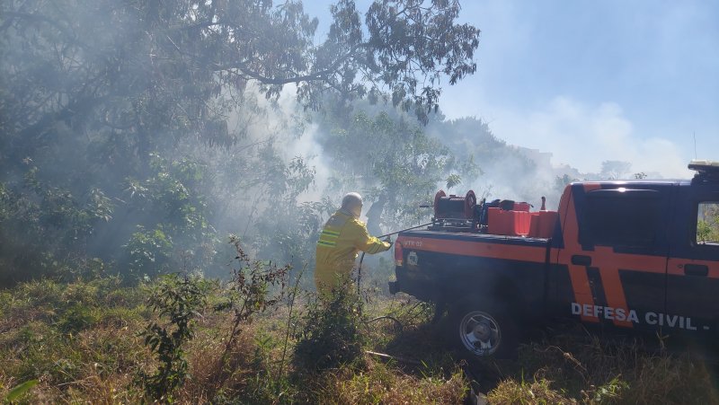 Equipes da Defesa Civil e da Zeladoria da Prefeitura estiveram para a contenção das chamas, cuja fumaça invadiu casas do entorno e podia ser vista em diferentes regiões da Cidade.