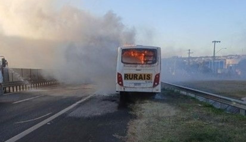 Ônibus com trabalhadores rurais pega fogo na região