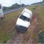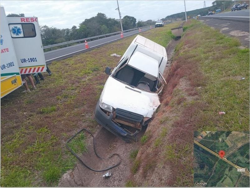 No quilômetro 350 o condutor perdeu o controle de direção do utilitário, que bateu na defensa metálica no acostamento. O carro retornou à pista, invadiu o canteiro central e parou somente quando houve colisão contra uma canaleta de concreto.