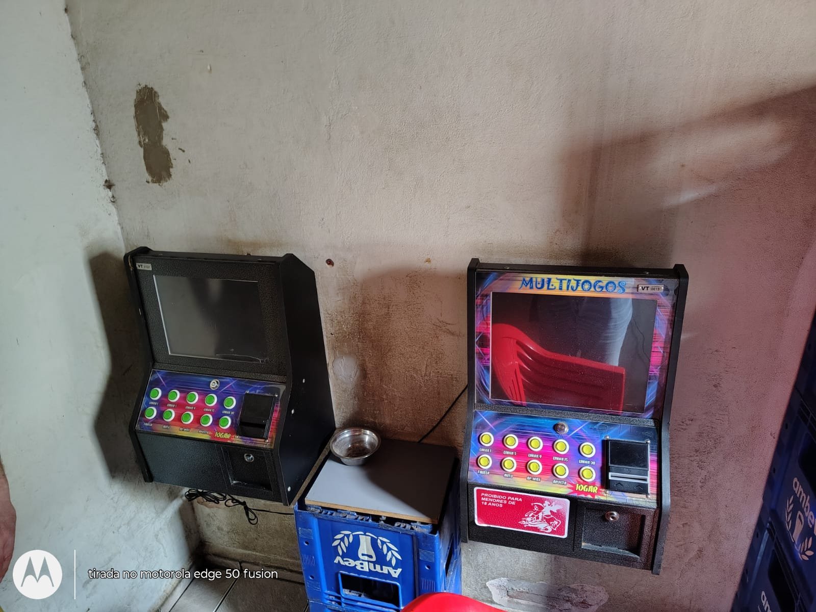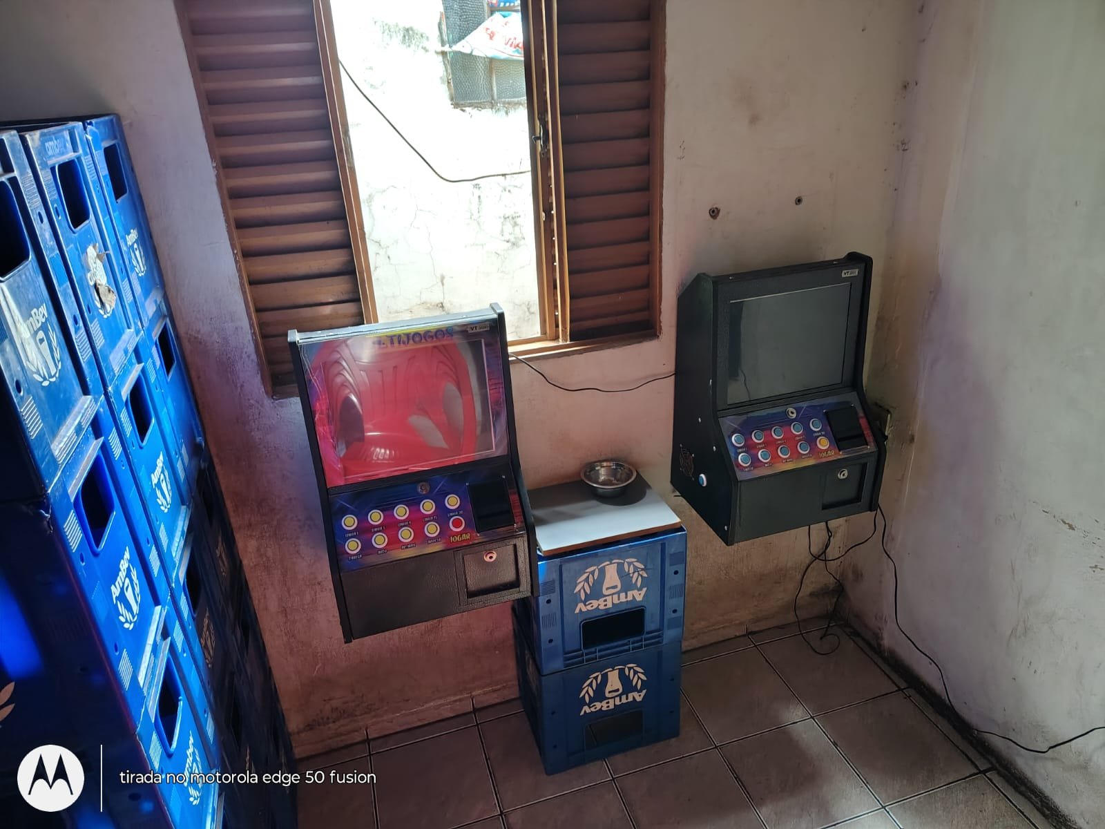Diligências foram efetuadas até o endereço, onde os policiais encontraram cinco equipamentos escondidos nos fundos do bar, com estrutura para acomodar os apostadores.