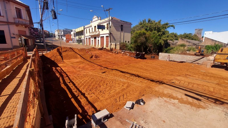 Além das intervenções no trecho da ponte, a Avenida Floriano Peixoto está recebendo melhorias em toda a sua infraestrutura de drenagem, desde a Praça Anita Garibaldi até o Pontilhão Arlindo Granado. Estão sendo modernizadas guias e calçadas, reposicionadas caixas de captação e aprimorado o sistema de condução das águas pluviais, garantindo maior eficiência e durabilidade.