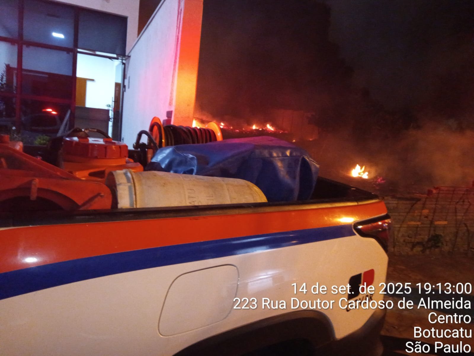 No local, pega uma sacola plástica e aloca próximo ao muro com um escritório vizinho. O fogo não demora a se propagar pela vegetação e atingir quase que a totalidade do terreno. Após o ato, o suspeito dá alguns passos lentos e depois corre em direção à Avenida Floriano Peixoto.