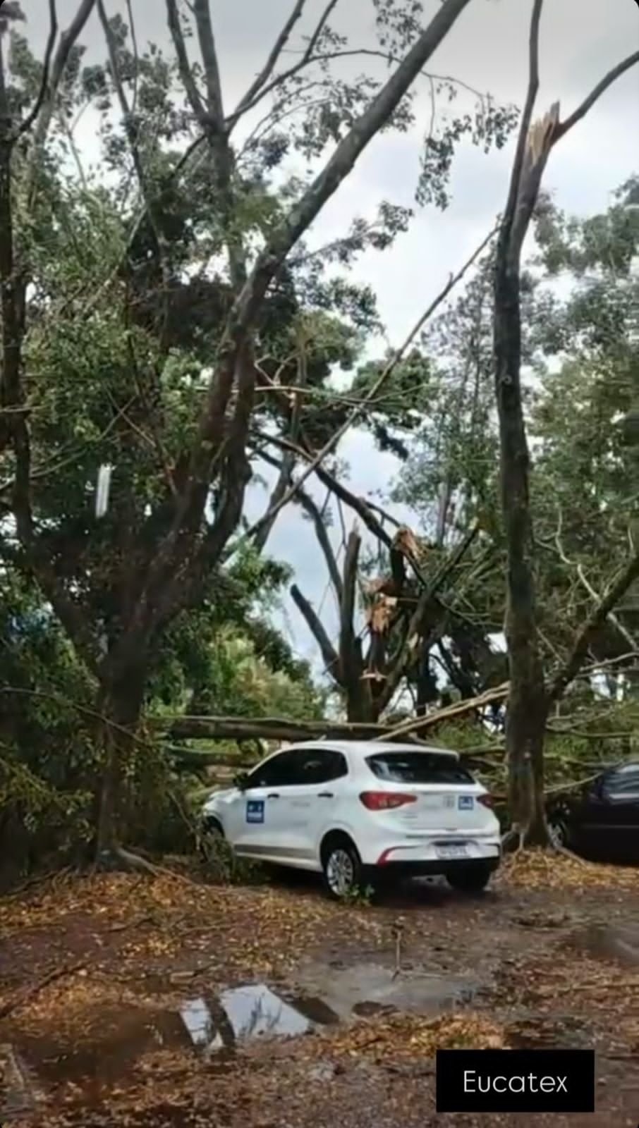 Em um posto de combustíveis na Avenida José Pedretti Netto um totem publicitário caiu sobre a calçada. Não há registro de feridos. No estacionamento da Eucatex, veículos foram danificados com a queda de árvores no estacionamento.