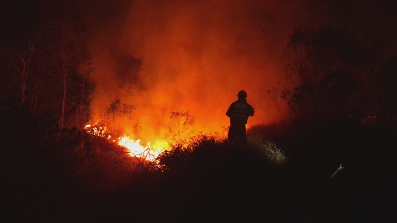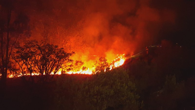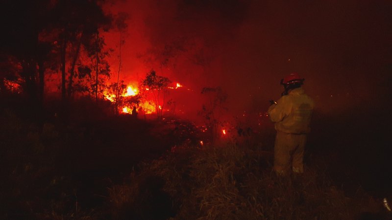 Devido ao forte vento e mato seco, as chamas se espalharam rapidamente