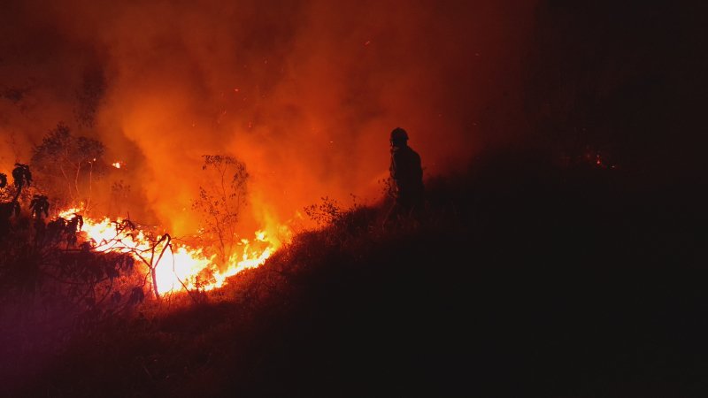 Corpo de Bombeiros e Defesa Civil atuaram no combate às chamas, com os trabalhos durando até a madrugada desta quinta (26). Há suspeita de que o incêndio seja criminoso.