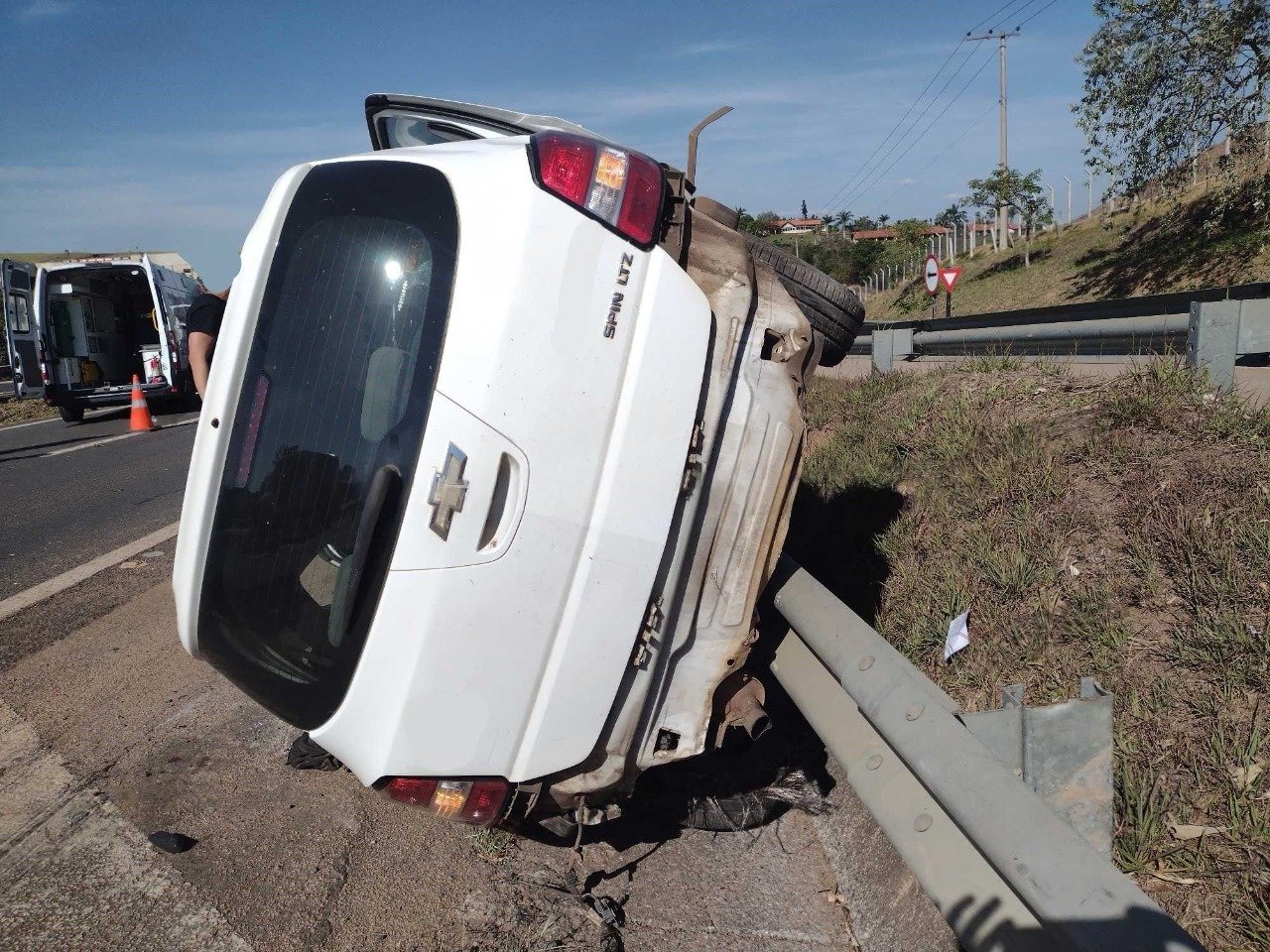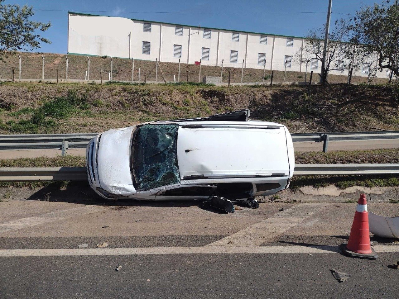 O condutor perdeu controle da Spin, vindo a capotar e parando somente na defensa metálica às margens da rodovia. Veículo sofreu danos consideráveis.