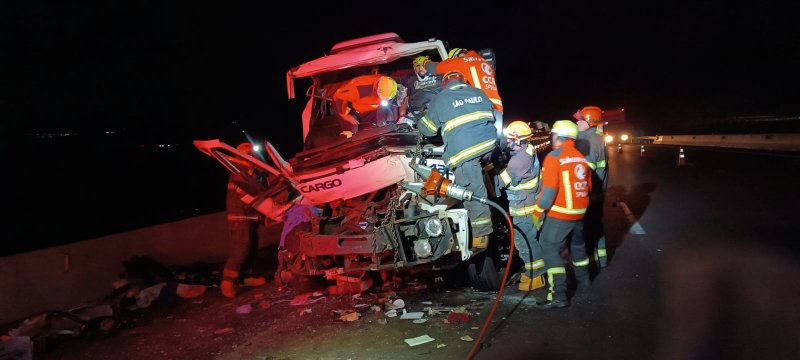 Os veículos trafegavam pela mesma faixa de rolamento quando o Ford Cargo, por motivos a serem apurados, colidiu contra a traseira do bitrem. O impacto danificou a cabine do motorista, que ficou preso às ferragens.