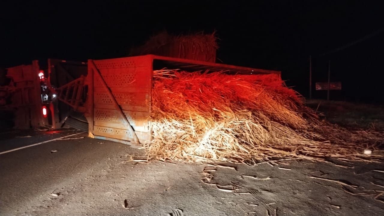 Houve necessidade de interdição da pista para remoção da carga e destombamento do bitrem, sendo que o trecho foi liberado no início da madrugada deste domingo (12).