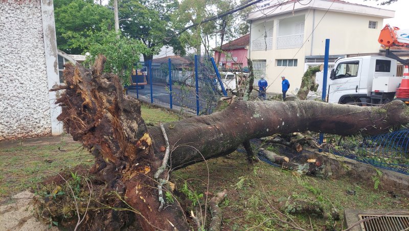 A raiz da planta foi arrancada devido ao peso, agravada pelas chuvas e vendaval que atingiram Botucatu nas últimas semanas.