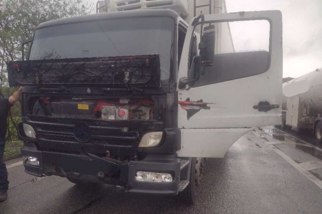 Nisso, o caminhão vinha na mesma pista e devido às condições climáticas, condutor não conseguiu frear ou desviar. Houve colisão contra a viatura, danificada após o acidente.