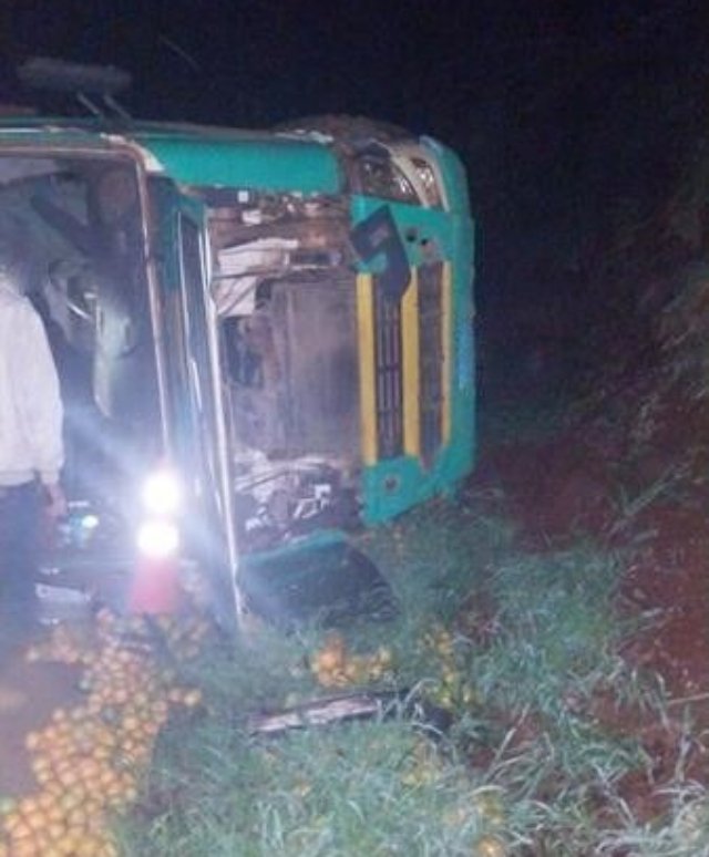 Acidente na noite deste sábado, 8 de novembro, resultou no tombamento de uma carreta de laranjas e o derramamento da carga na Rodovia Rodovia Antônio Machado Sant’Anna (SP 255), em São Manuel.