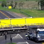 Carreta tenta manobrar e trava próxima à “Serra de Botucatu”