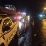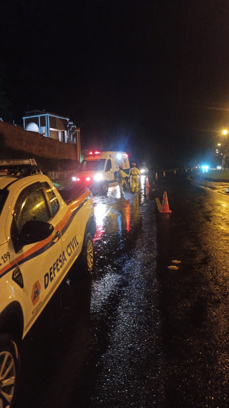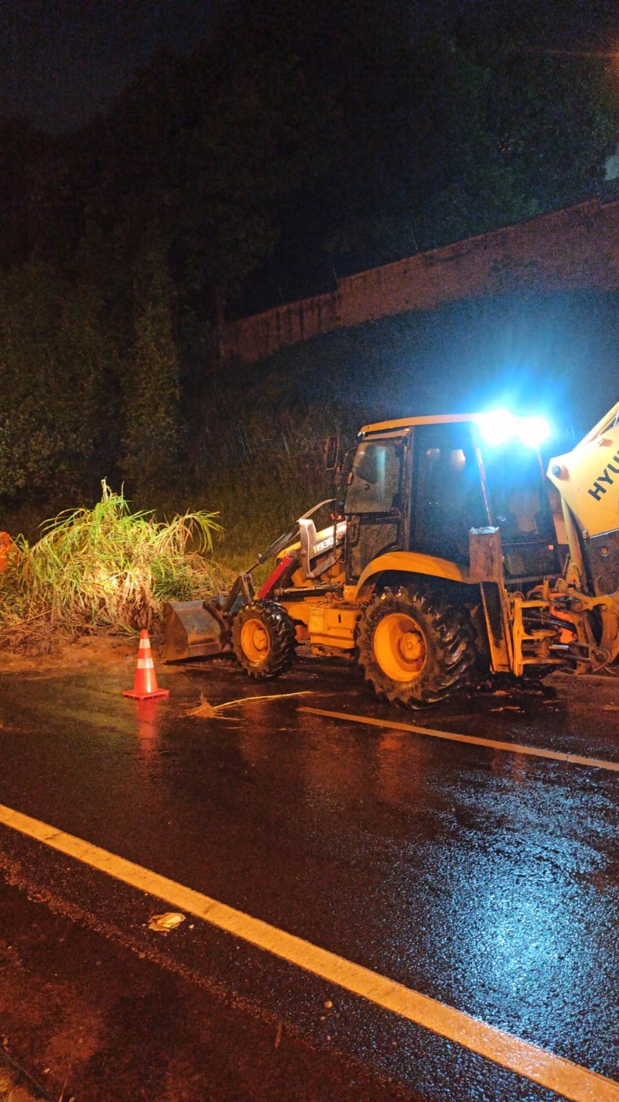 Tráfego de veículos ficou interditado devido aos detritos na pista. Equipes da concessionária e Defesa Civil estiveram no local para a retirada da lama e árvore.