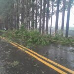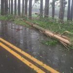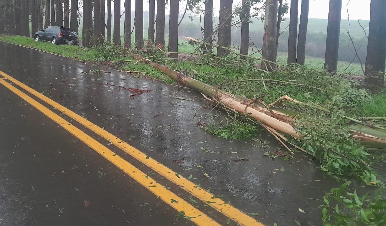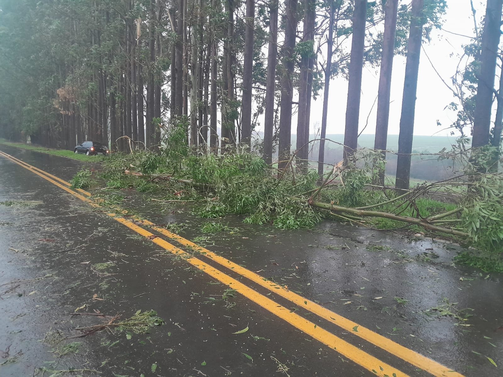 Devido a chuva e fortes ventos, um eucalipto de grande porte caiu sobre a pista da Estrada Antônio Vicentini, na chamada “Serra de Pardinho”. Troncos e galhos ficaram sobre a via, o que prejudicou o tráfego de veículos.