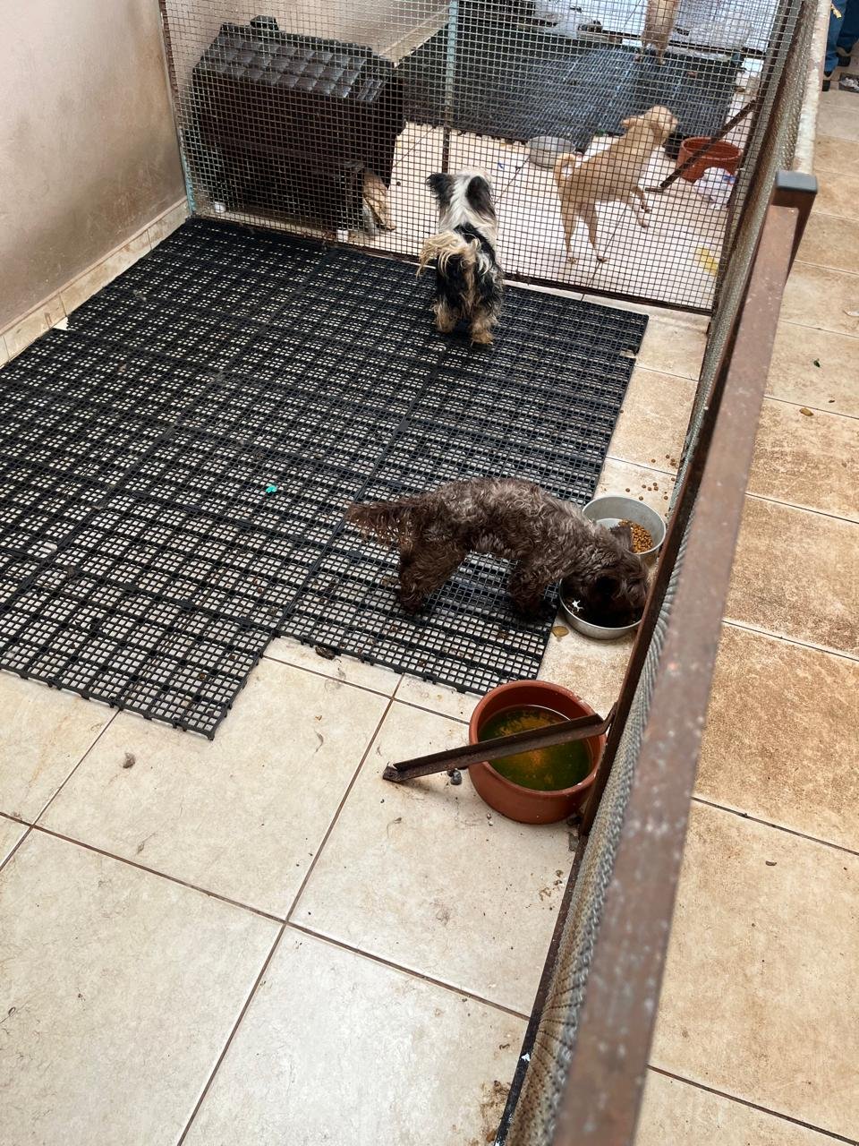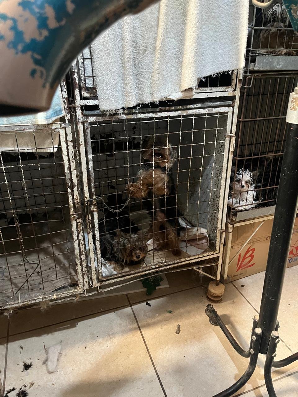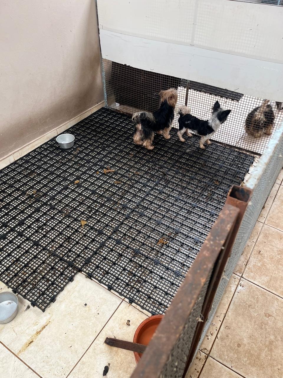 Os animais eram de pequeno porte, sendo que alguns estavam em gaiolas e outros em pequenos espaços convivendo com mais cães.