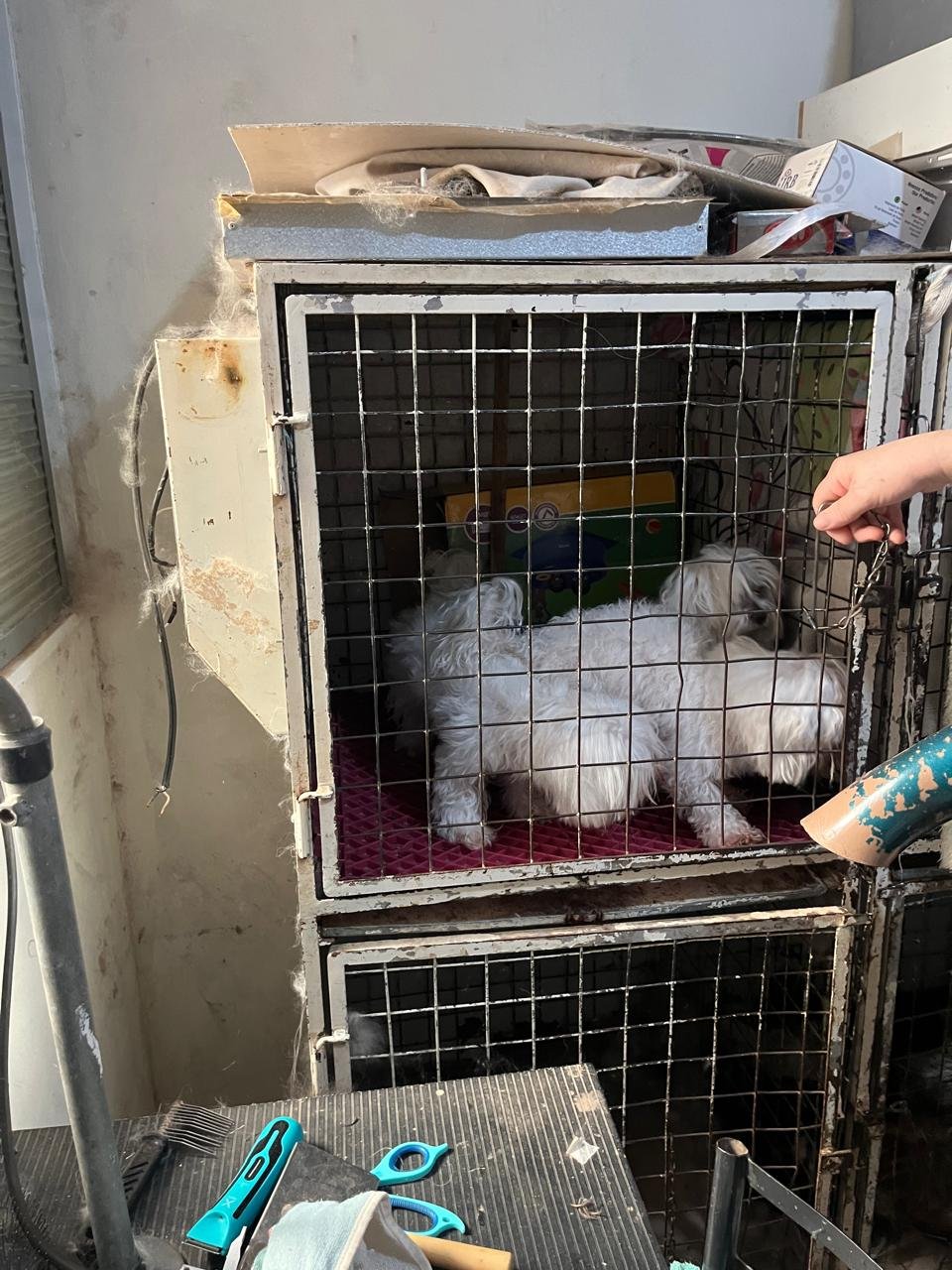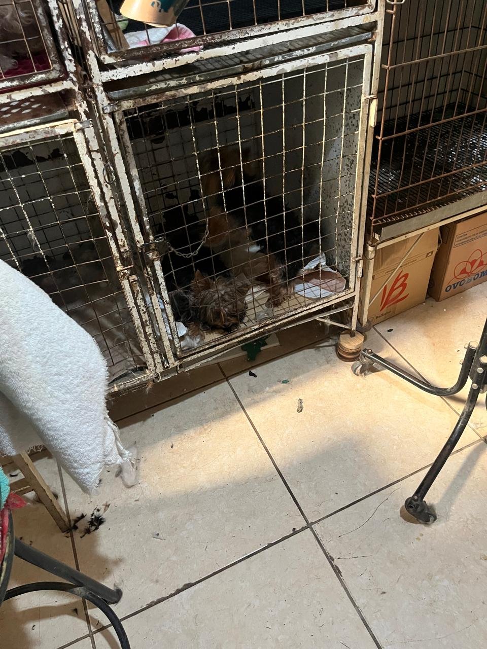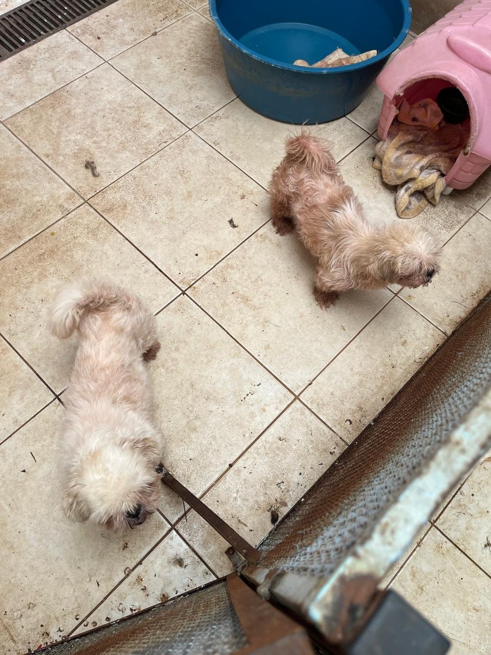 Os animais eram de pequeno porte, sendo que alguns estavam em gaiolas e outros em pequenos espaços convivendo com mais cães.