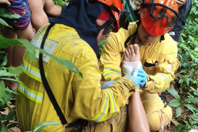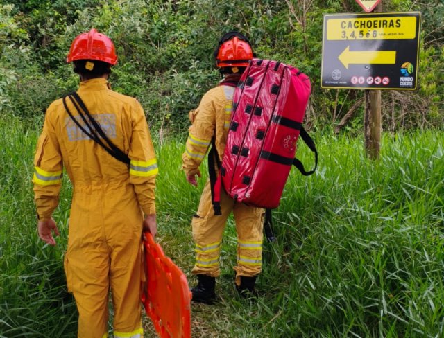 O caso ocorreu na tarde deste sábado, 27 de dezembro, enquanto os visitantes tentavam acessar uma das quedas. O homem sofreu suspeita de fratura no pé esquerdo.