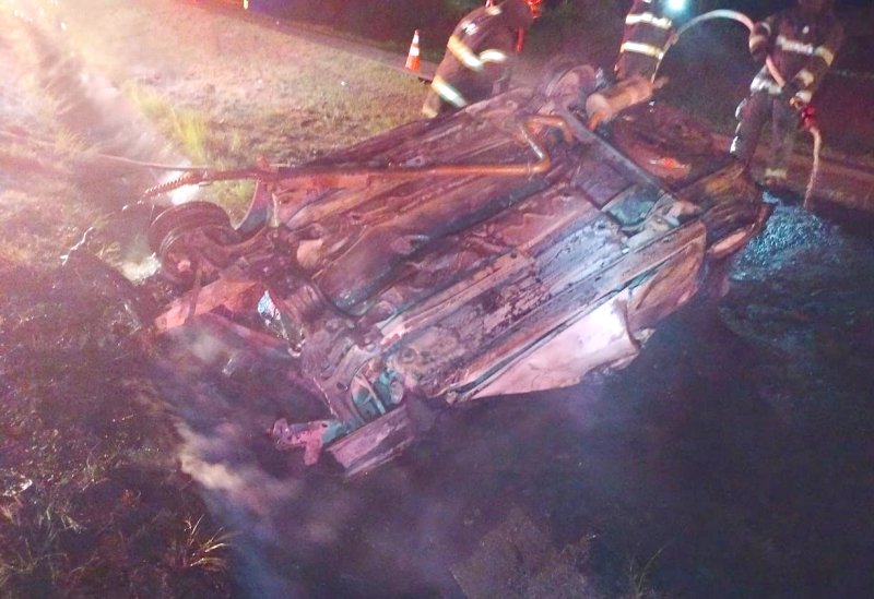 Carro capota, pega fogo e condutor morre na Marechal Rondon
