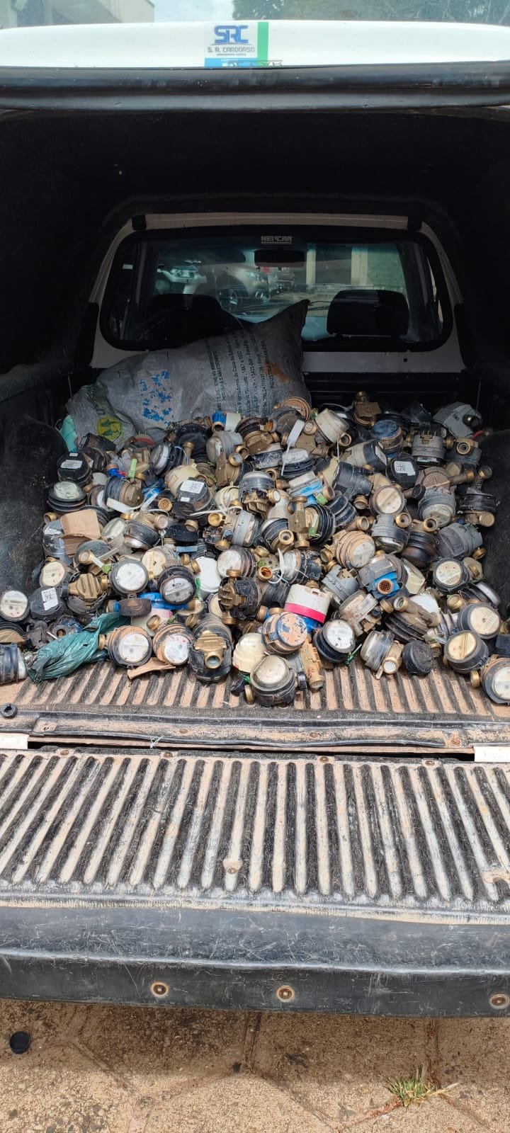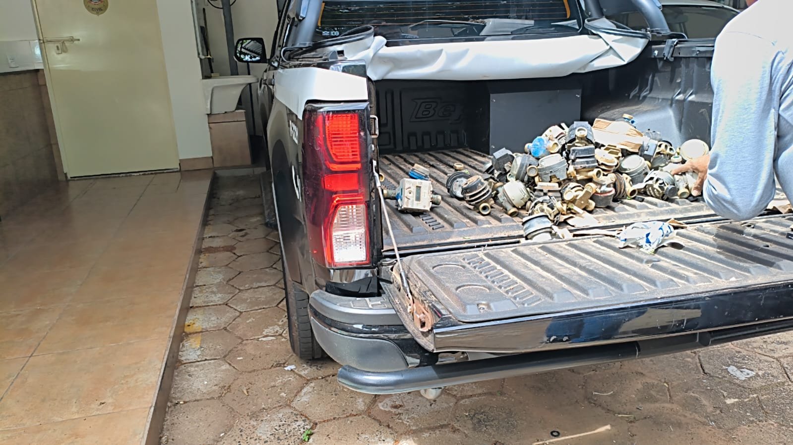 Os aparelhos estavam na residência do empresário, sendo encontrados dentro de sacas alojadas no quintal e no porta-malas de um veículo. Indagado, ele não informou de quem os hidrômetros foram comprados.