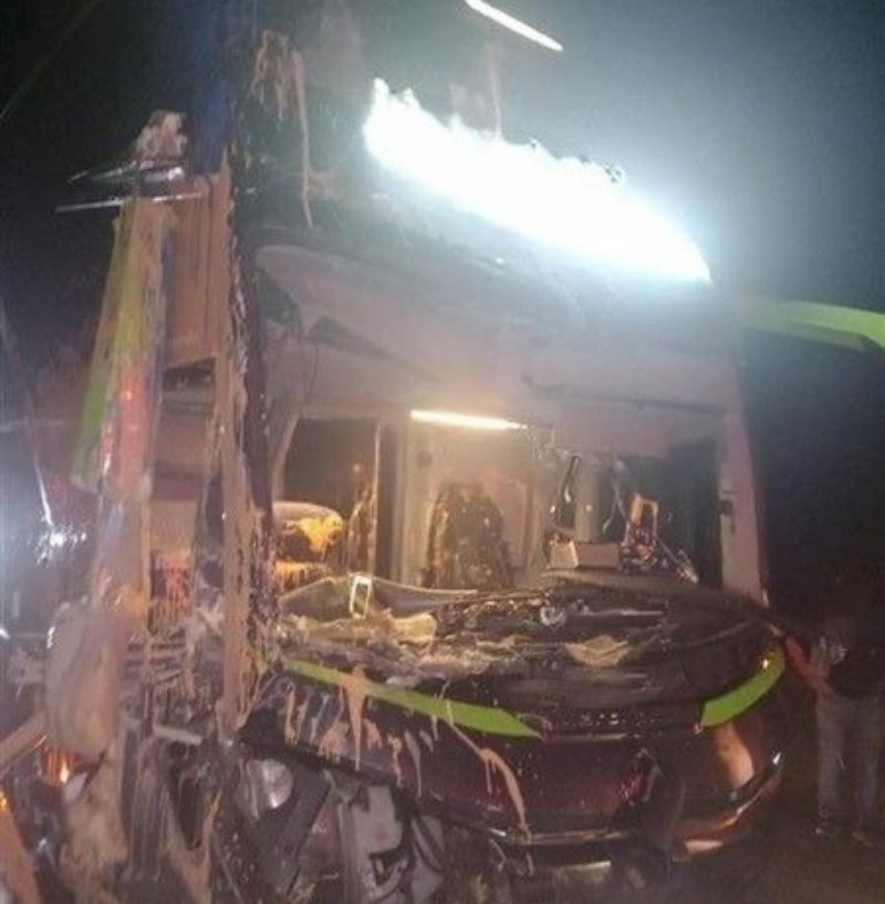 A parte frontal e cabine do motorista do ônibus ficou destruída e parte da carga que estava no caminhão (não especificada pela Artesp) acabou espalhada pela pista.