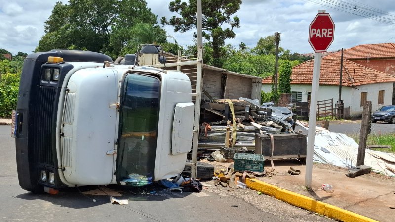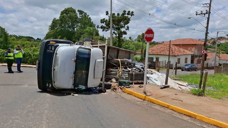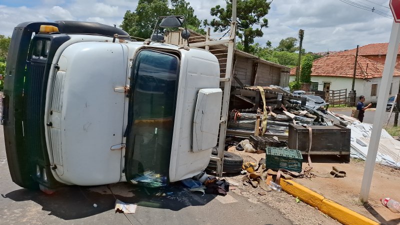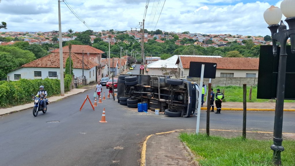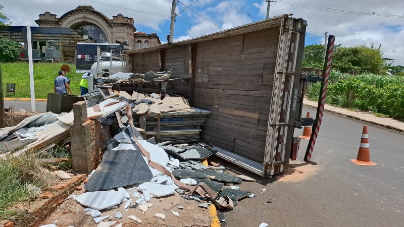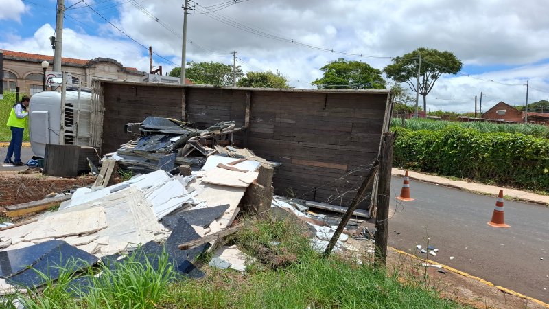 Um caminhão tombou no final da manhã desta quinta-feira, 22 de janeiro, ao tentar efetuar uma curva nas proximidades da Estação Ferroviária de Botucatu.