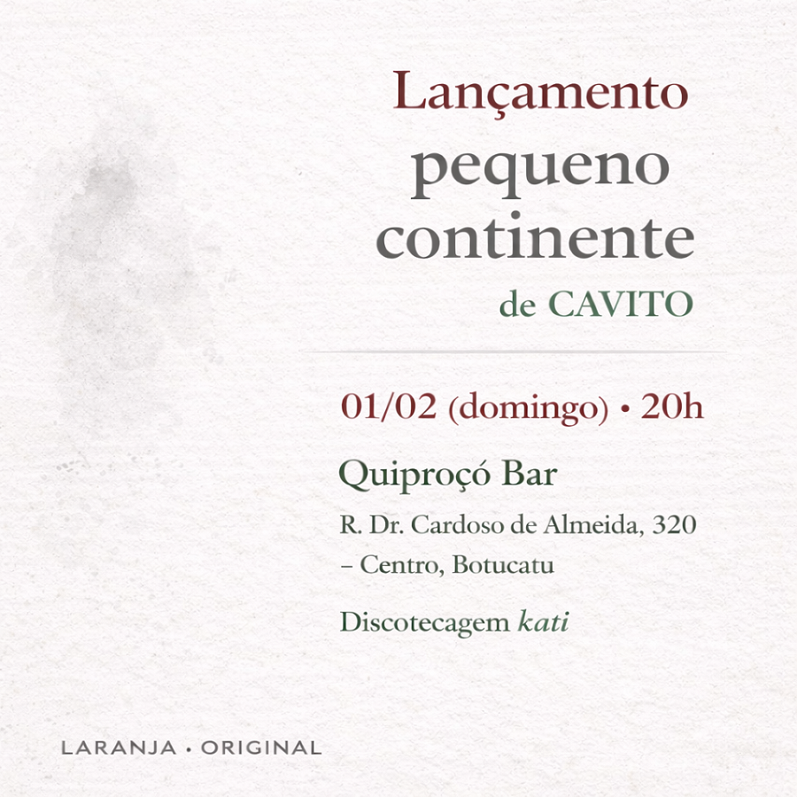 Para além das informações objetivas, permito-me uma avaliação pessoal: Cavito é um intelectual e artista de repertório amplo e sensibilidade diversa. Leitor assíduo, transita com familiaridade pelas culturas clássicas, mantém-se aberto às vanguardas e reflete, de forma consciente, a ebulição entre diferentes gerações. Nossa amizade começou em 2018, em um cenário pouco convencional: um iglu do espaço cultural da cidade, numa manhã de sábado, durante um debate em um grupo de Filosofia que ainda existe em Botucatu – o que já indicara uma disposição comum entre nós. Já perto do fim de um debate sobre o “mundo da imagem”, teoria associada ao teórico canadense da comunicação Marshall McLuhan, trocamos algumas impressões sobre o tema. Caio estava sentado ao meu lado, acompanhado de sua companheira Katielle – massoterapeuta, DJ e artista, que também se tornou uma amiga. Segundo ele, não seria difícil guardar o meu nome, uma vez que Vinícius também é o nome do seu filho.