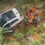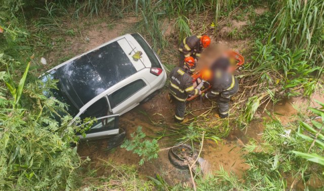Motorista resgatado após passar a noite preso em carro que despencou de barranco