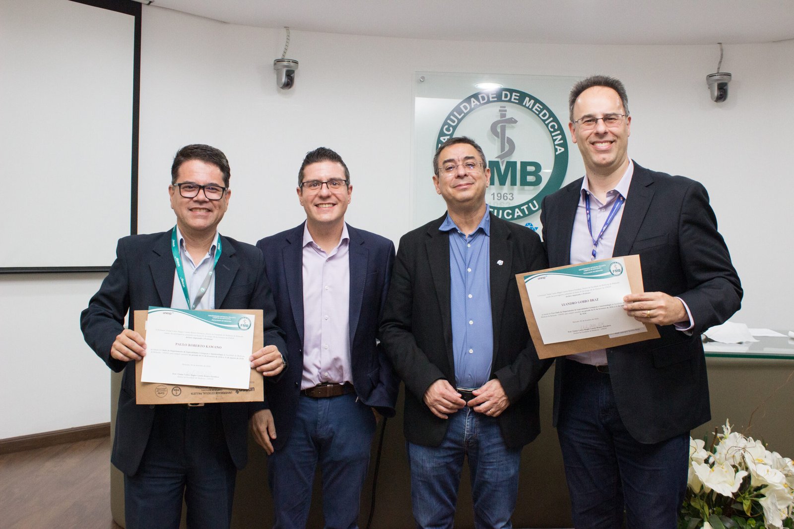 A cerimônia foi conduzida pelo diretor da FMB/Unesp, professor Carlos Magno Fortaleza, e contou com a fala do vice-diretor, professor Pedro Lourenção, além de manifestações dos chefes, vice-chefes e demais presentes.