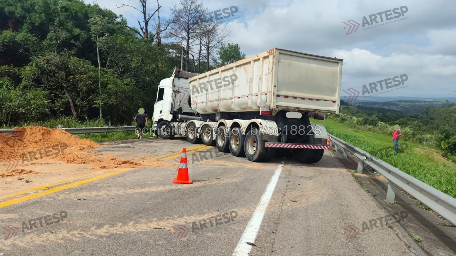 O acidente ocorreu por volta das 6h40, no quilômetro 218 envolvendo um caminhão Scania R540 carregado com areia. Segundo a Artesp, o segundo veículo envolvido ainda não foi identificado.