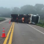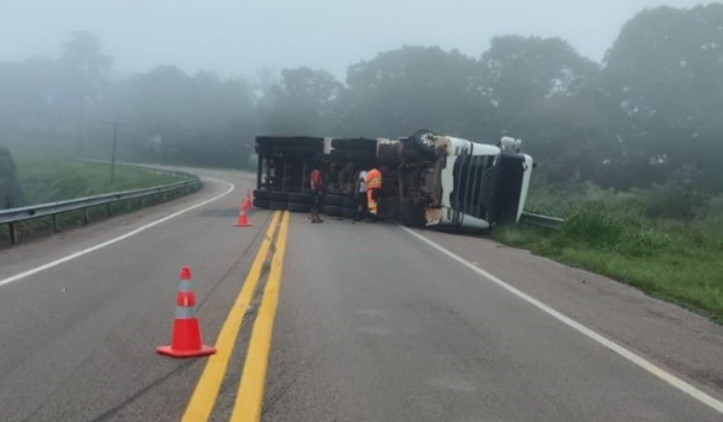 Veículo na contramão provoca tombamento de caminhão na Rondon