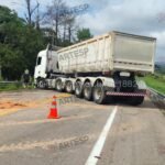 A carga foi derramada para a pista, provocando interdição da Rondon por mais de três horas para os trabalhos de destombamento e recolha do material. O motorista da carreta sofreu ferimentos leves.
