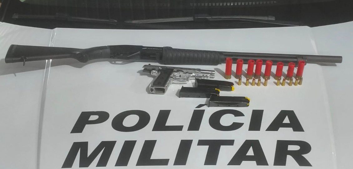 Durante a abordagem, o homem confirmou a posse do armamento e entregou aos policiais uma pistola Taurus calibre 9mm; uma espingarda CBC calibre 12; três carregadores de pistola 9mm; dez munições intactas de calibre 9mm e sete cartuchos intactos e 01 deflagrado de calibre 12.