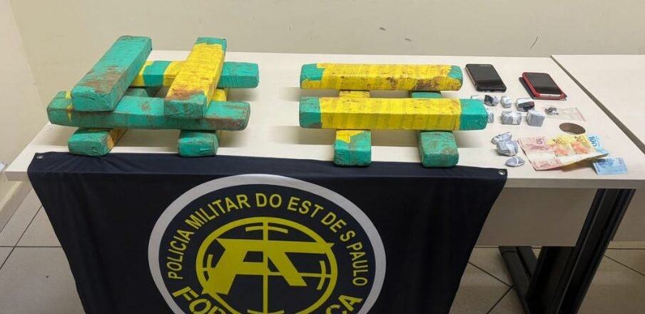 Durante a vistoria, foram encontradas porções de maconha em uma sacola, além de um tambor contendo 10 tijolos da droga, totalizando 12,904 quilos de entorpecentes. Também foram apreendidos R$ 150 em dinheiro e dois aparelhos celulares.