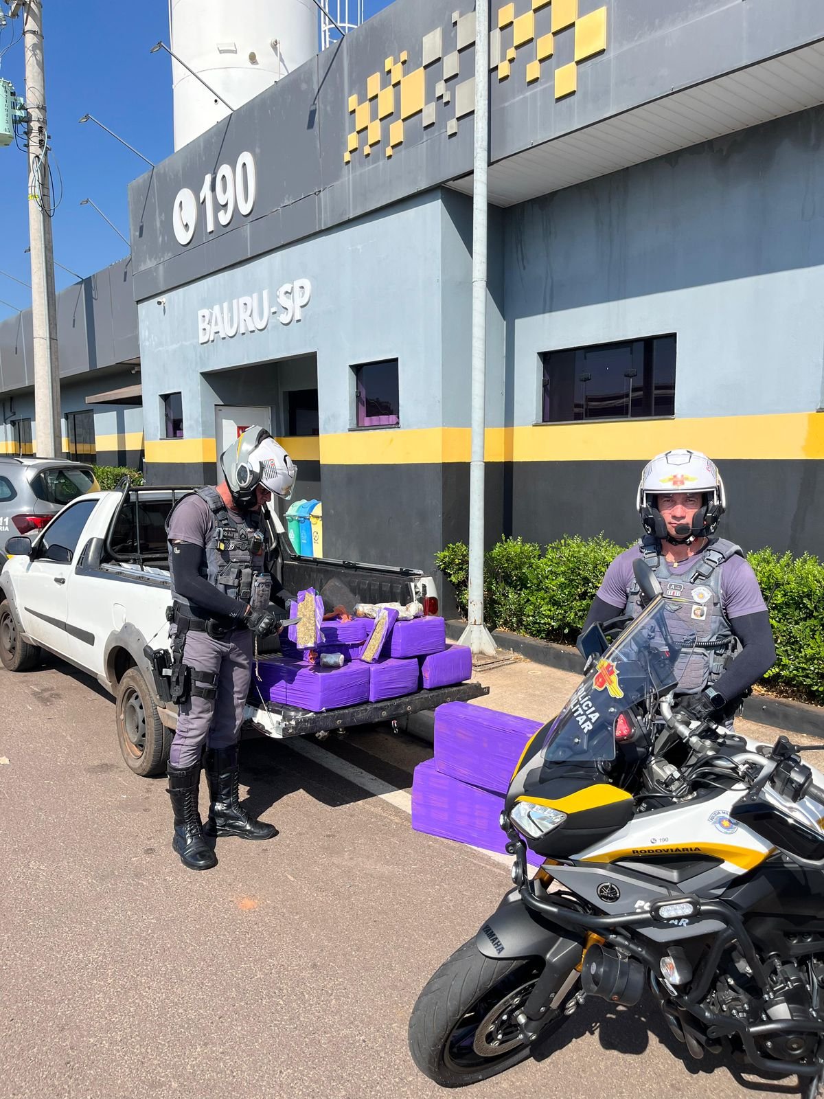 Os policiais do 2º Batalhão de Polícia Rodoviária abordaram um veículo Fiat Strada e, ao vistoriarem o compartimento de carga, localizaram diversos tabletes de drogas. A ocorrência foi encaminhada à Delegacia da Polícia Federal de Bauru, onde a conferência detalhada totalizou 218,400 kg de maconha, distribuídos em 230 tabletes, além de 1,700 kg de haxixe do tipo “Dry”, divididos em oito pacotes.